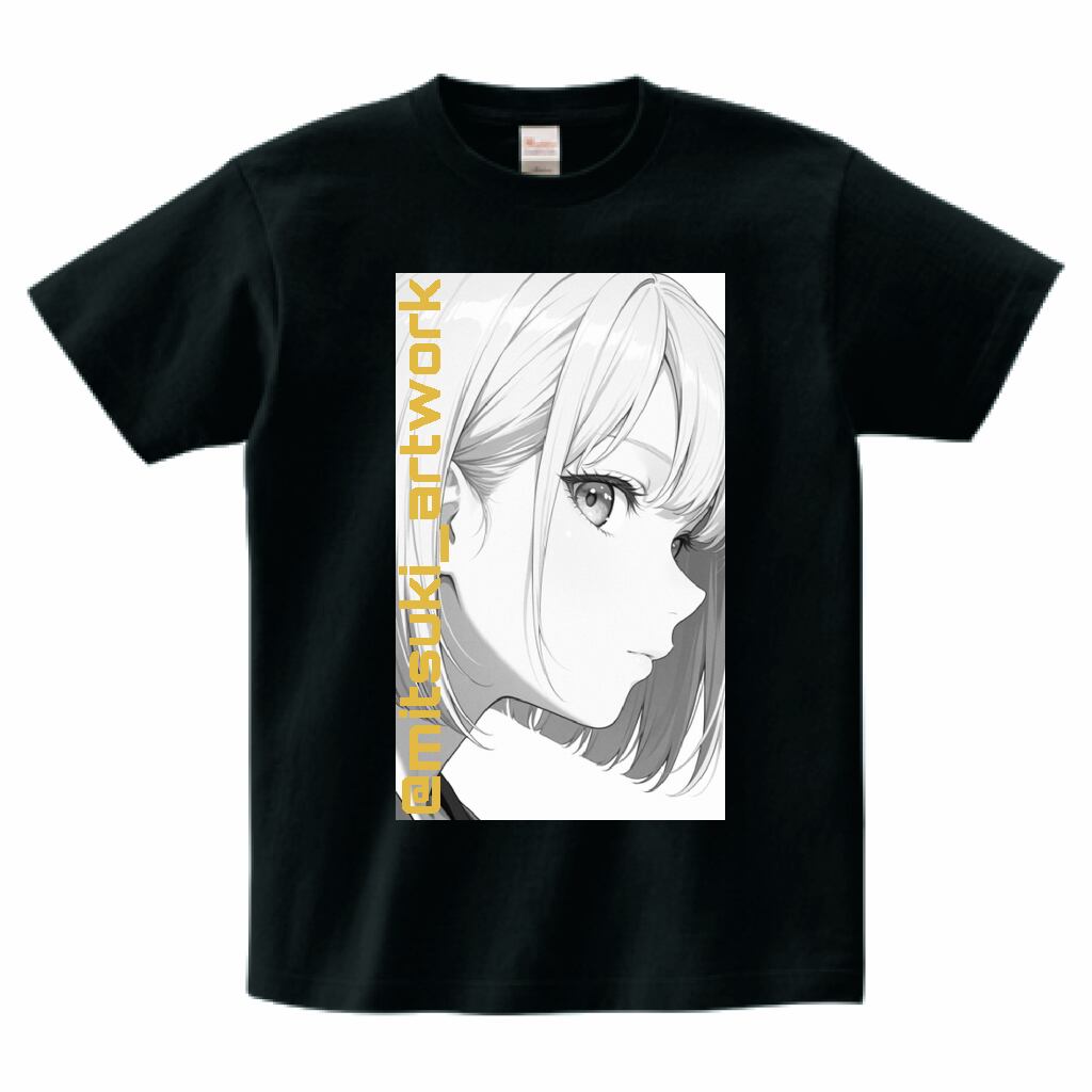 紗菜のイラストとロゴが入ったモノクロTシャツです。