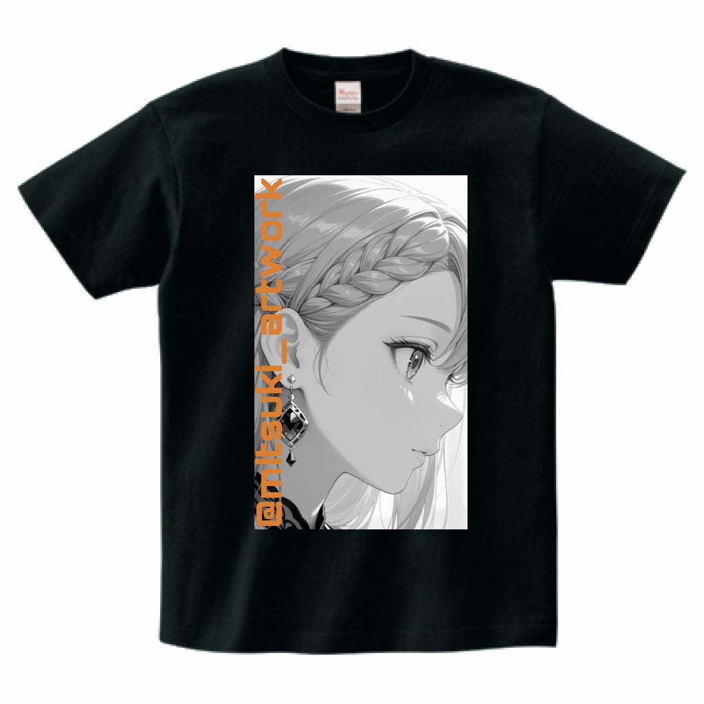 莉子のイラストとロゴが入ったモノクロTシャツです。