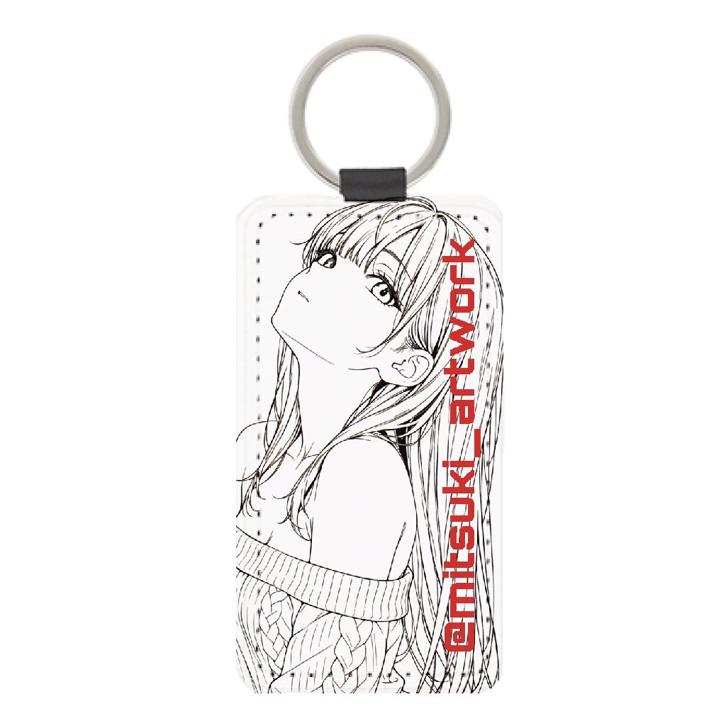 線画で描かれた美月とロゴのシンプルなキーホルダーです。